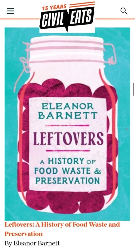 ![]()  Leftovers recommended reading in Waitrose Weekend! 30/3/24‘After all those delicious meals, it’s only appropriate that we should consider the leftovers. A scholarly history of food waste and preservation, Eleanor Barnett’s Leftovers explores the inventive ways our ancestors sought to make the most of their food, how we do so today, and how we might go about it in the future’