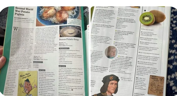 ![]()  Articles in BBC History Magazine January '24I’ve published two articles in January’s issue: ‘What is the world’s oldest surviving recipe?’ and ‘Sugar-free Tudor biscuits’ with recipe!